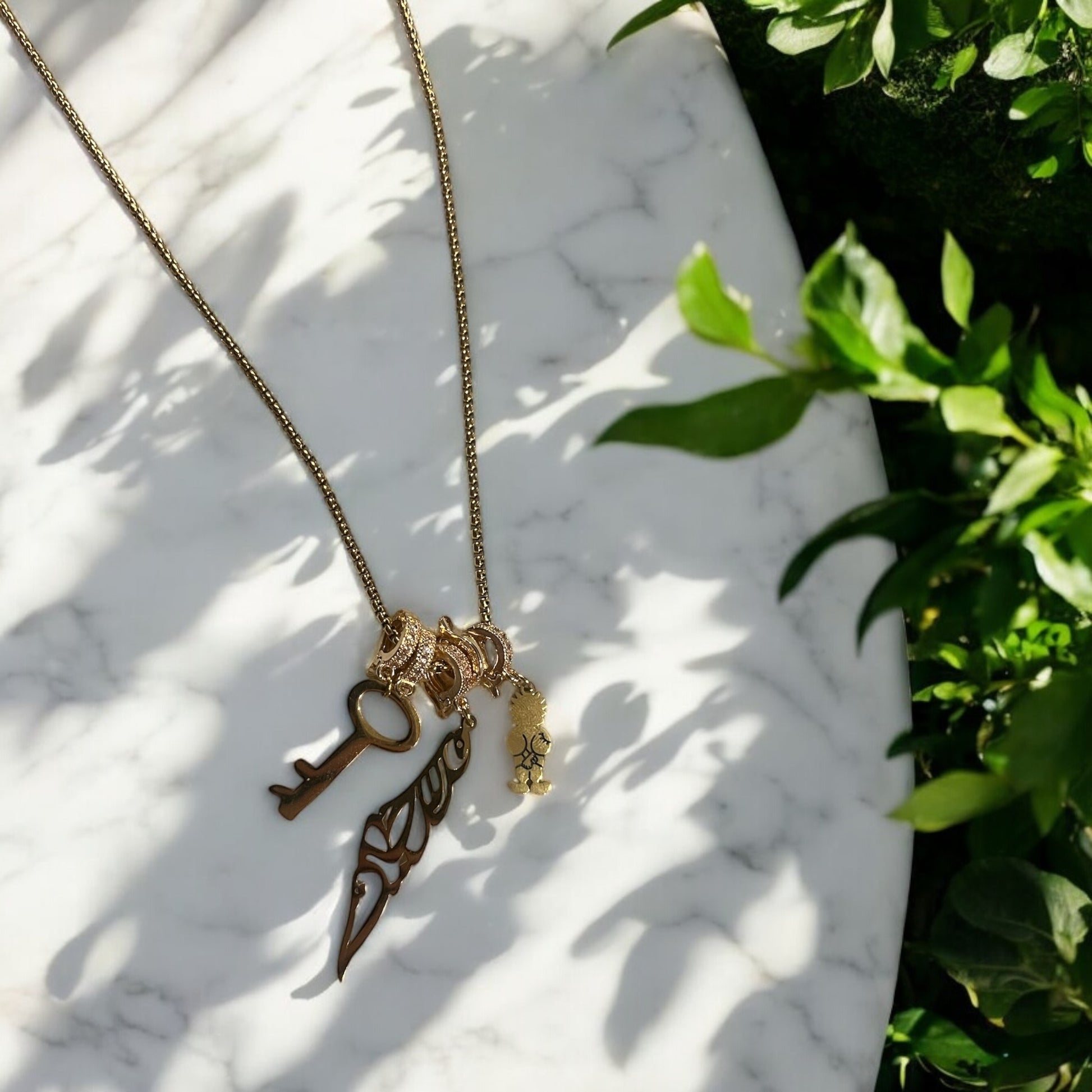 Palestine Charm Necklace – Handala, Calligraphy Map, Al-Awda Key | Gold