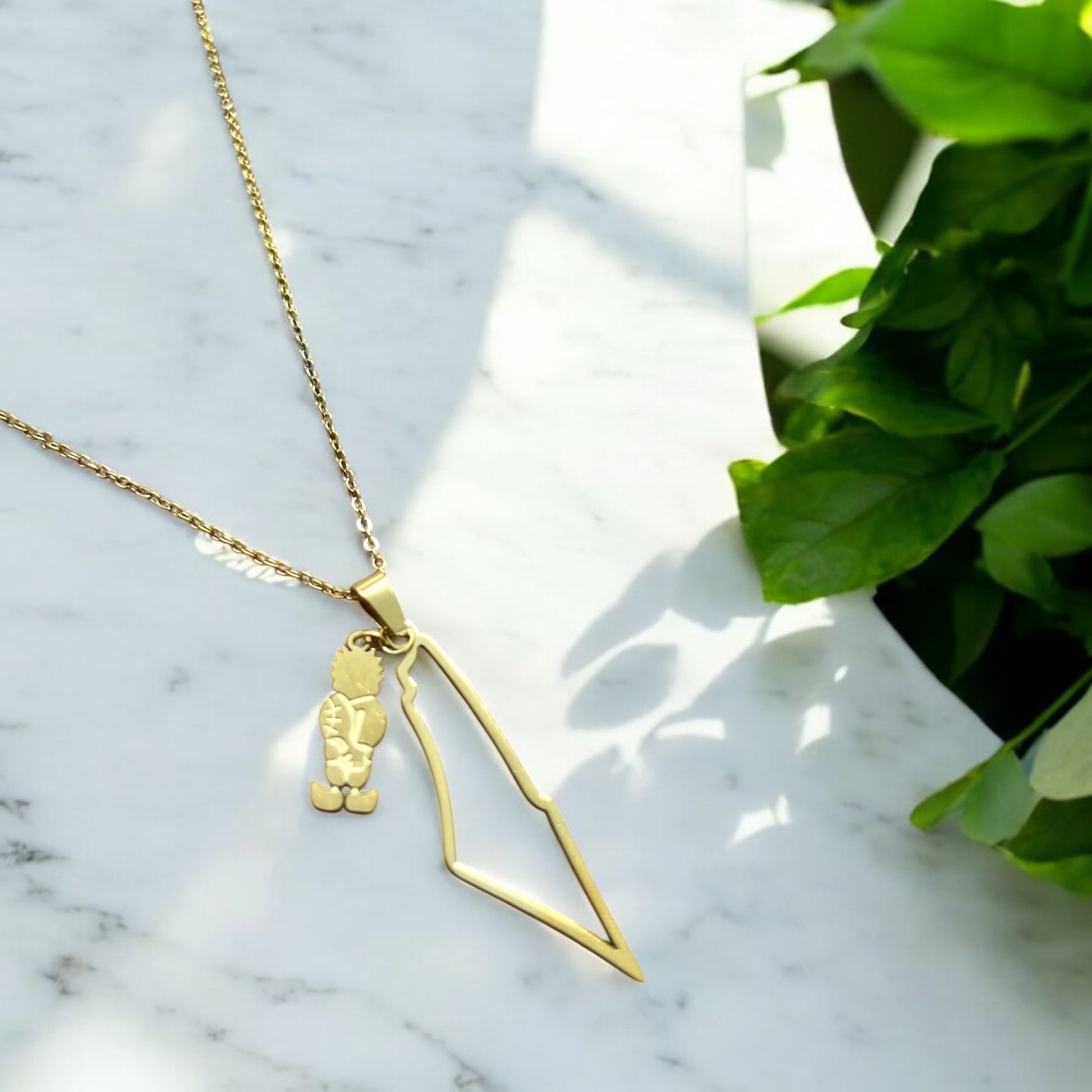 Palestine Map and Handala Charm Necklace – Gold & Silver